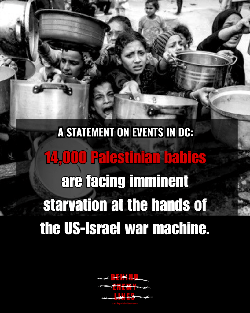 A statement on the event in DC: 14,000 Palestinian babies are facing imminent starvation at the hands of the US-Israel war machine.