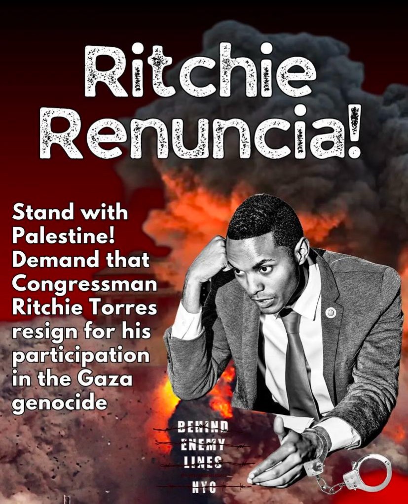 Congressman Ritchie Torres is The Bronx’s most bloodthirsty supporter of Israel and the US’s genocidal war on Gaza. We demand he resign for participation in the Gaza genocide!