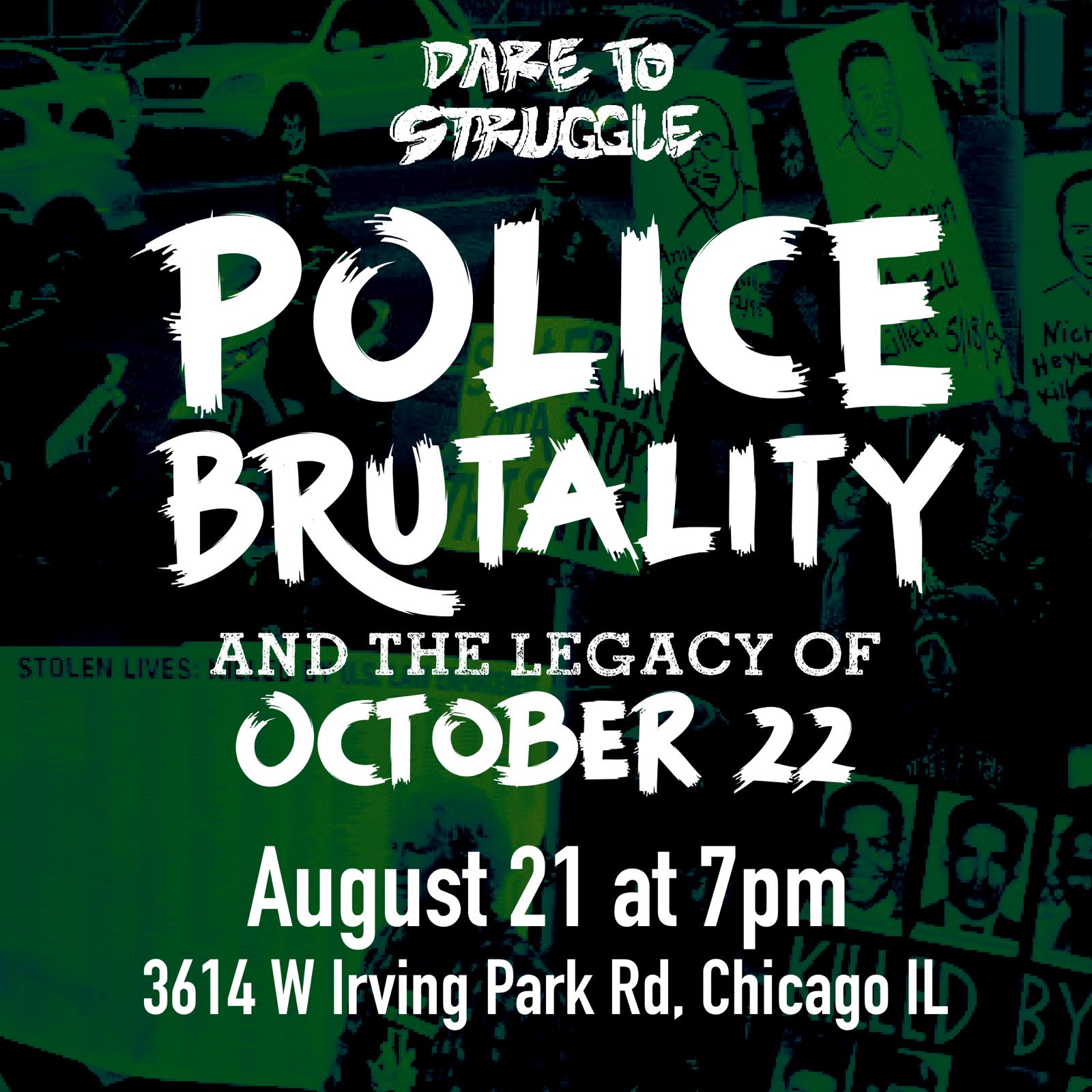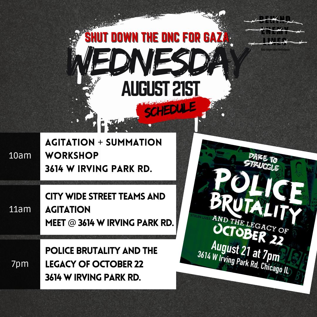 - 7pm The Struggle Against Police Brutality with Dare To Struggle Presentation – 3614 W Irving Park Rd.