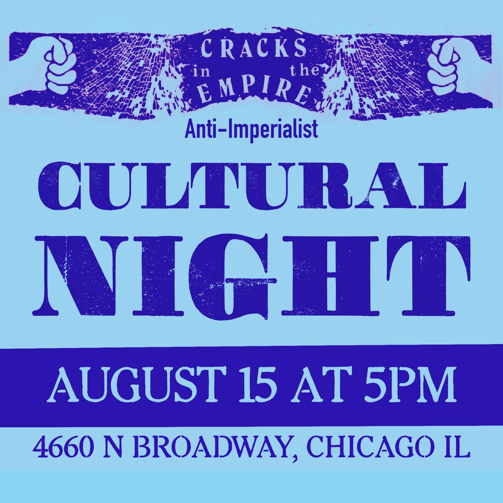 - 5-7pm Culture of Resistance Event – Nabala Cafe 4660 N Broadway