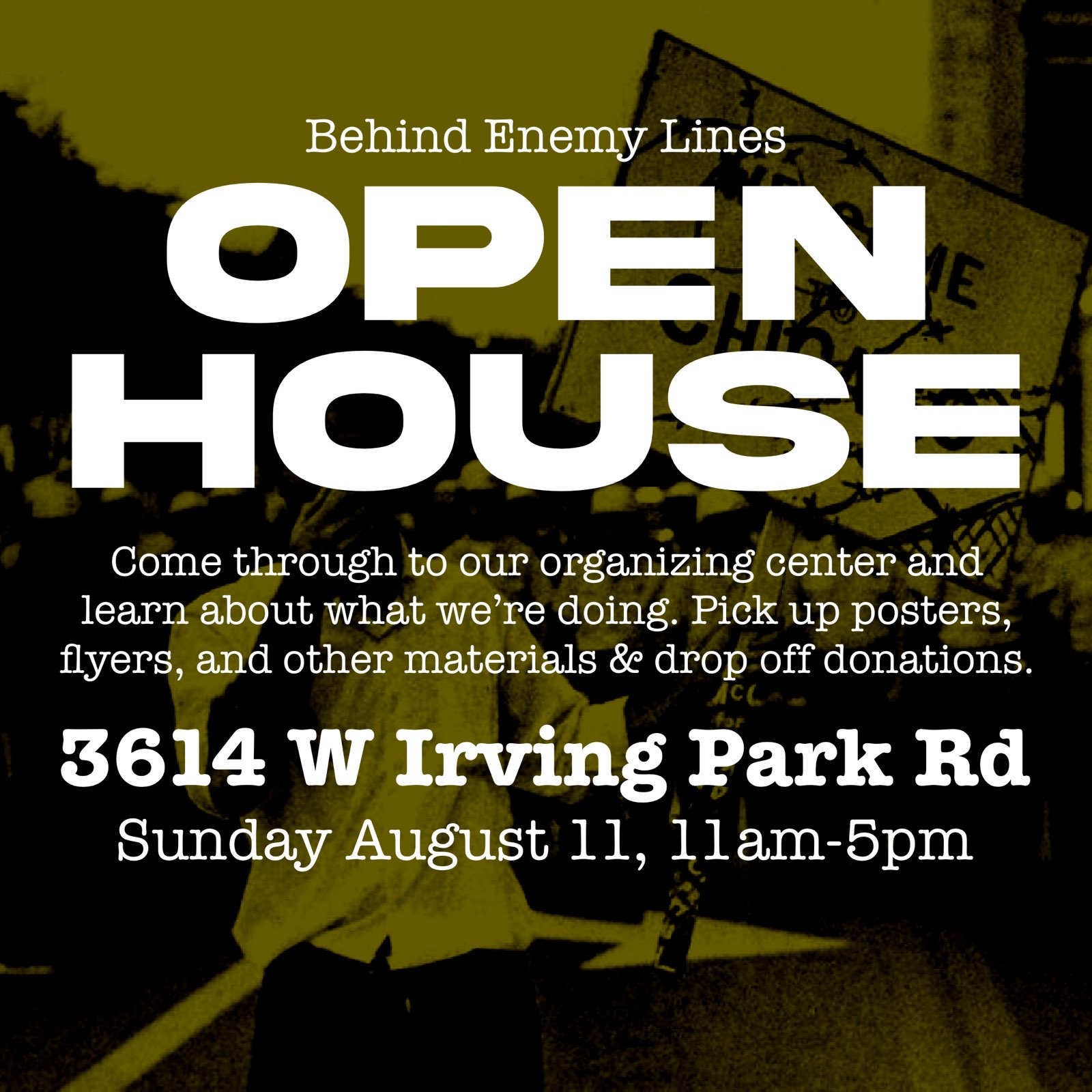 - 11am City Wide Street Teams and Agitation – Meet at 3614 W Irving Park Rd.