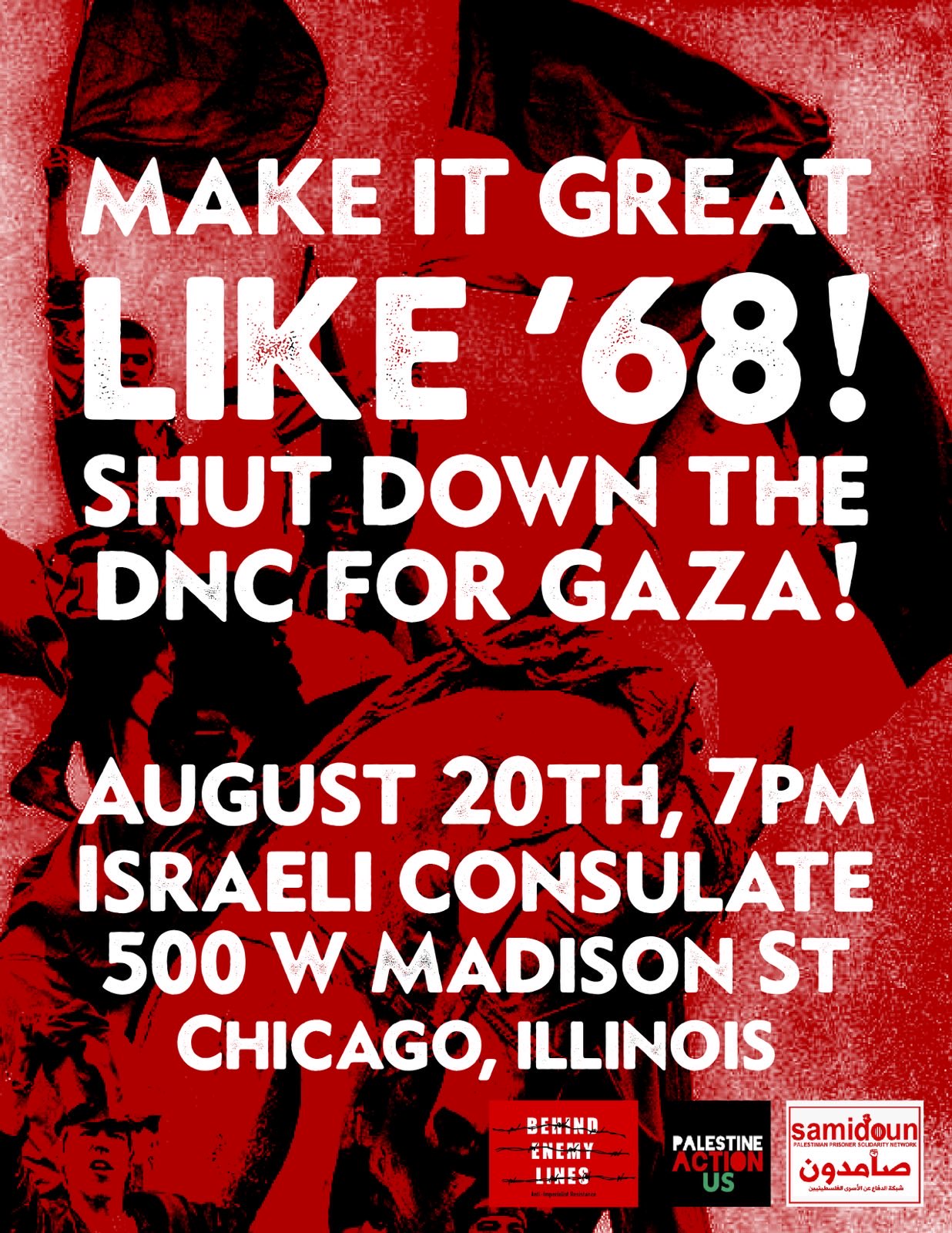 - 7pm Behind Enemy Lines Protest: Make it Great Like ’68 – 500 W Madison