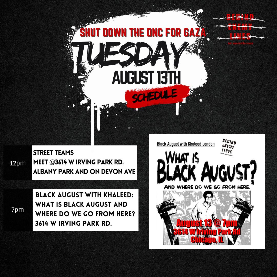 - 7pm Black August with Khaleed: What is Black August and where do we go from here? – 3614 W Irving Park Rd.
