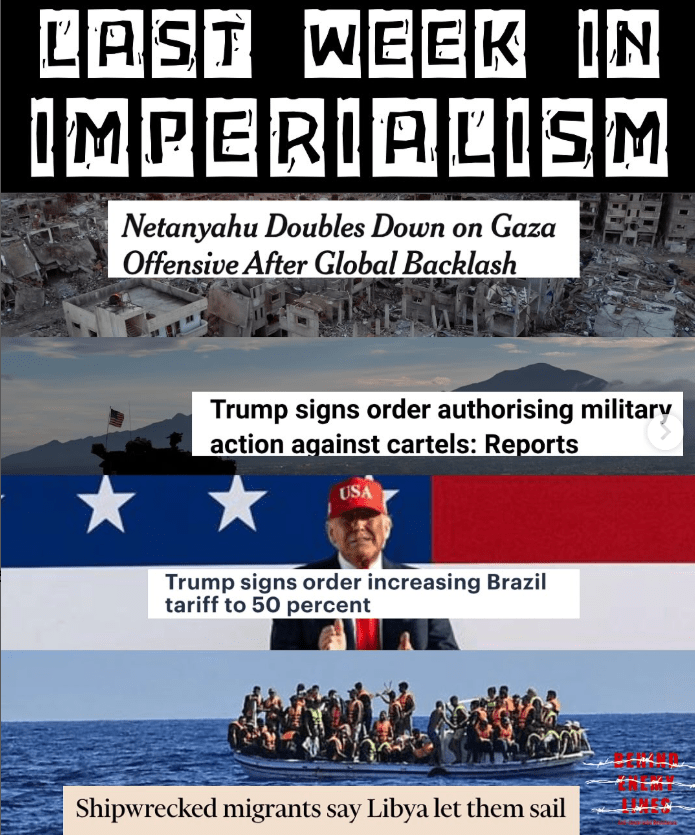 Putting his grotesque spin on familiar US imperialist tactics, Trump is threatening to deploy the US military in Mexico with the supposed goal to do battle with drug cartels. Mexico’s president Claudia Sheinbaum responded by saying, “The United States is not going to come to Mexico with the military. We cooperate, we collaborate but there is not going to be an invasion.” Trump has already used tariffs and the threat of tariffs to create a sense of chaos and impose a more belligerent US foreign policy towards Mexico . Expanding current US military and drone operations in Mexico to include lethal force would be an act of war on Mexico.