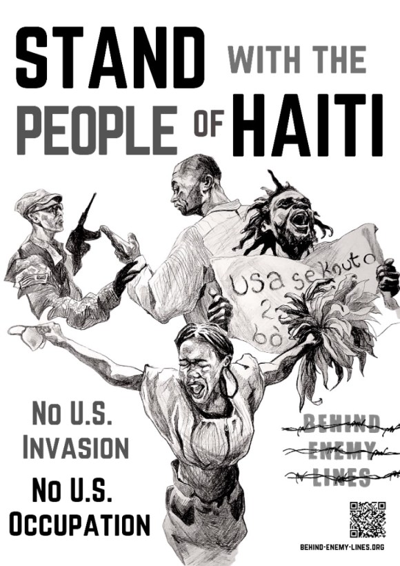 “The Haitian people have to determine their own destiny. As an anti-imperialist organization, Behind Enemy Lines is committed to opposing this latest US intervention and standing with the people of Haiti. People in the US have an obligation not to fall for the lies of “humanitarian intervention”, but rather to oppose our own government and stand with the people of Haiti through protest and resistance to US imperialism.”