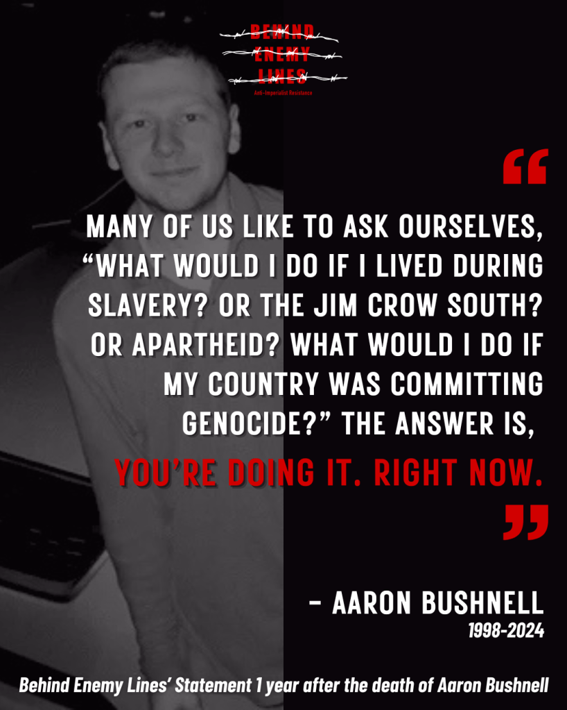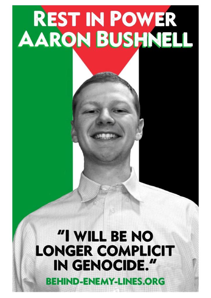 “One year ago Aaron Bushnell, an active duty member of the US Air Force, made the ultimate sacrifice. His self-immolation in front of the Israeli embassy in Washington D.C. came as the Gaza Health Ministry reported nearly 30,000 deaths, with atrocities mounting—”
