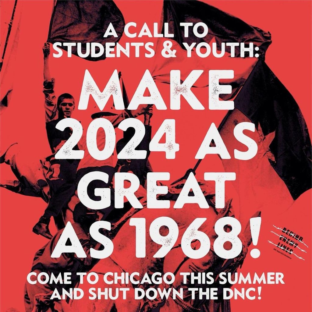 “If you’ve spoken out and protested against Israel’s genocidal war on Gaza, you may have been doxxed, fired from your job, slandered in the bourgeois media, or arrested. Your student organization may have been disbanded by your college administration. You should wear all those acts of repression as a badge of honor, as to be attacked by the enemy is a good thing. But have you thrown down against the Chicago police yet? Come to Chicago this summer to oppose the Death and Nakba Coronation, a.k.a. the Democratic National Convention!”