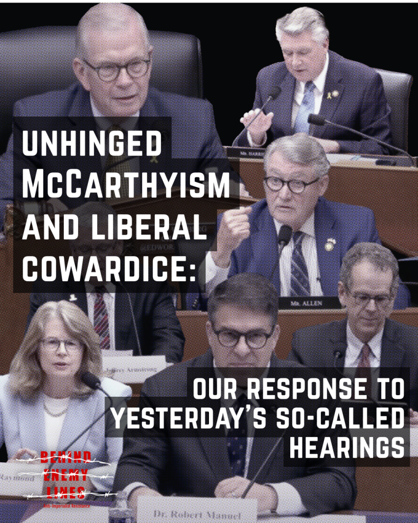Unhinged McCarthyism and Liberal Cowardice: Our response to yesterday’s so-called hearings