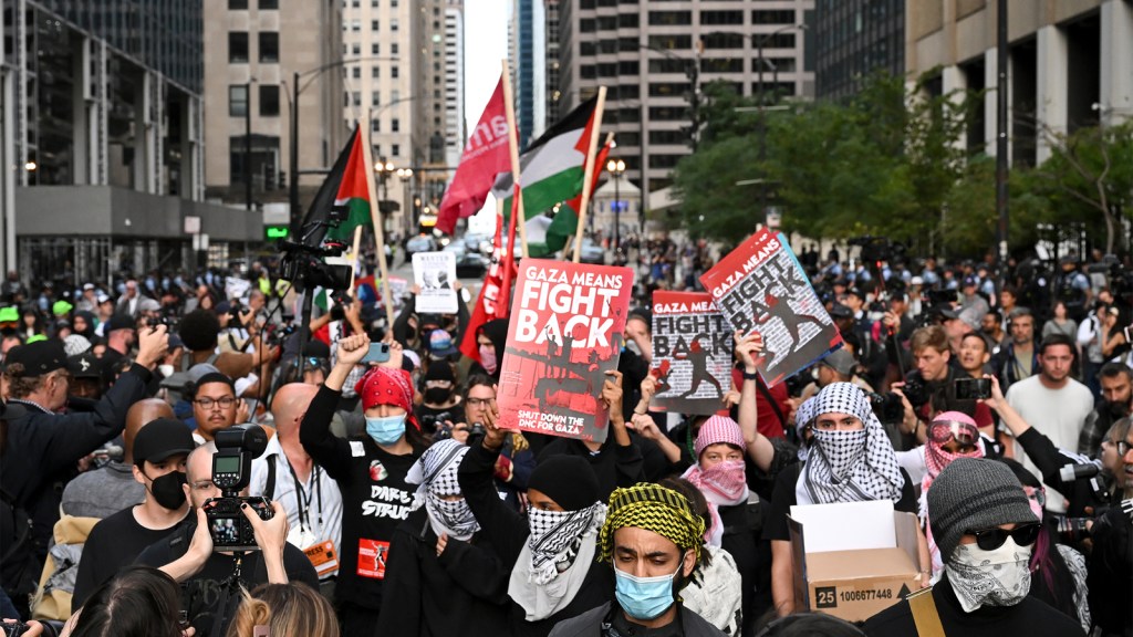 1. For more on the 8/20 protest and our overall effort to shut down the DNC, see our Report Back from the Make it Great Like ’68 Protest at the DNC and “The DNC is that way!”: A summation of our fight to shut down the DNC for Gaza.