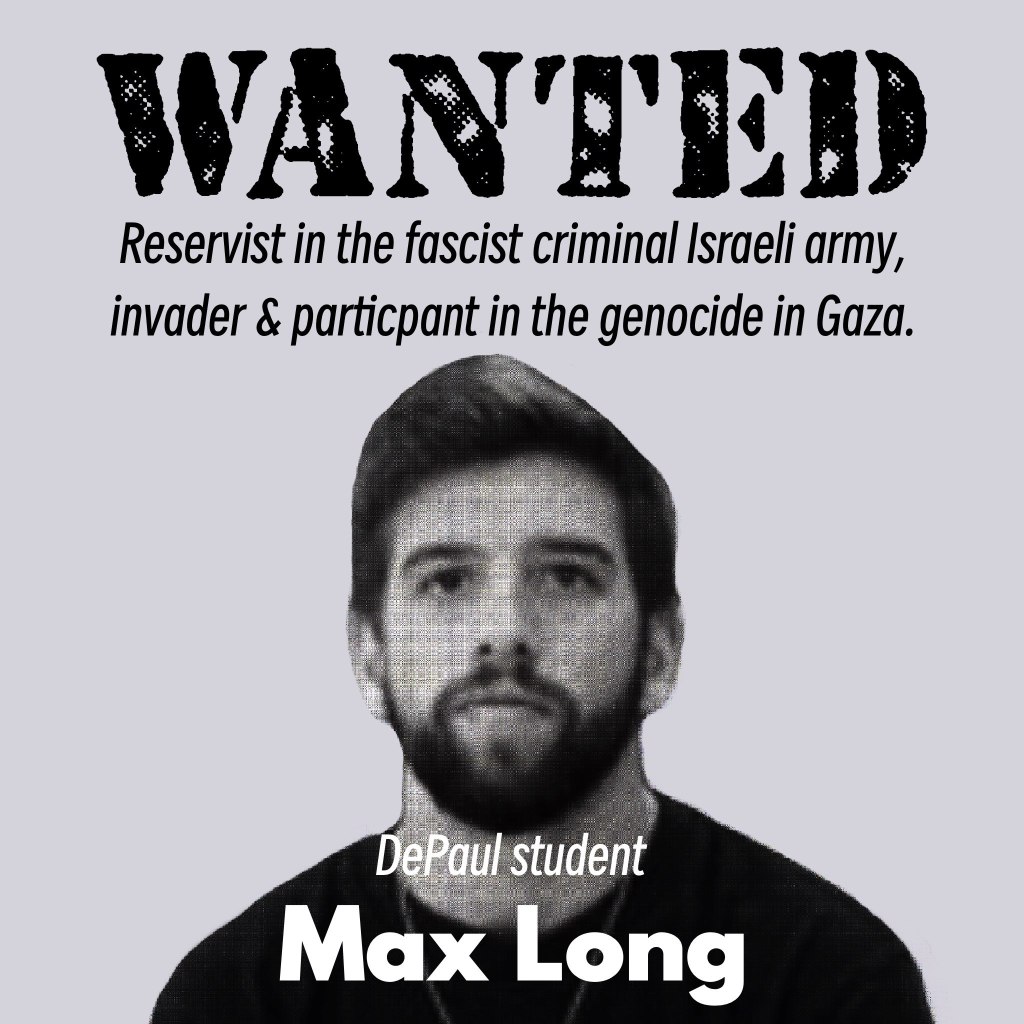 For several weeks, DePaul University has allowed two pro-genocide students (one of which is a returned IDF solider who participated in the genocide in Gaza) to parade on campus, actively antagonizing students and openly supporting the Gaza genocide by draping themselves in Israeli flags, while asking passersbys to “Ask an IDF soldier”. DePaul has no problem with a student who joined a foreign military, willingly participated in the mass slaughter of well over 100,000 people, and then returned to campus to celebrate that mass slaughter. But when, just this week, someone finally gave this student a tiny bit of the justice that genociders and mass killers deserve, DePaul and other Chicago institutions are crying crocodile tears over safety and supposed antisemitism.